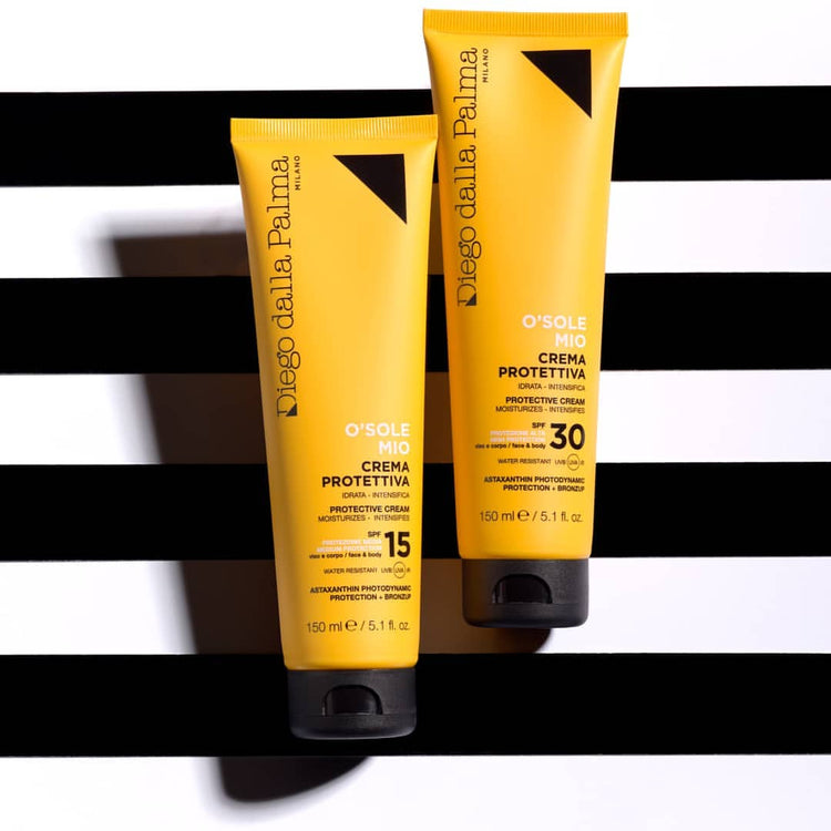 O'SOLEMIO de Diego Dalla Palma garantizan una piel protegida durante mucho tiempo, un color intenso y luminoso, y un bronceado duradero.